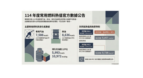 114年度車用汽油、柴油、液化石油氣及天然氣之熱值
